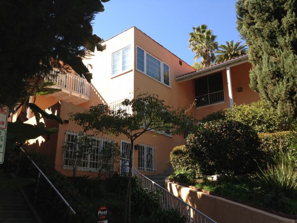 Located in one of Hollywood’s most historic residential neighborhoods, plans for the development included height restrictions to guarantee that every home retained a view of the city below. This residence is located in one of Hollywood’s most historic residential neighborhoods, Whitley Heights. Whitley Heights was the last project of developer H. J. Whitley. He developed the area from 1918 to 1928 as an upper-middle-class, single-family residential neighborhood designed to resemble a Mediterranean hillside village. The concept of a hillside development was new to Los Angeles at the time, and the plans included graded roads, retaining walls, and flights of pedestrian steps. Height restrictions guaranteed that every home retained a view of the city below, and architectural design guidelines ensured that the neighborhood homes maintained the appearance of Mediterranean-style villas. This house on Holly Hill Terrace is designed in the Mediterranean style, featuring an L-shape plan that follows the unique configuration of the lot and an exterior clad in smooth-finished stucco. Over the years, this home has remained largely intact, with the exception of a two-story veranda added in 1941. The Conservancy holds an easement protecting the home’s historic façade. It is one of two easements held by the Conservancy in Whitley Heights, along with a residence on Milner Road.